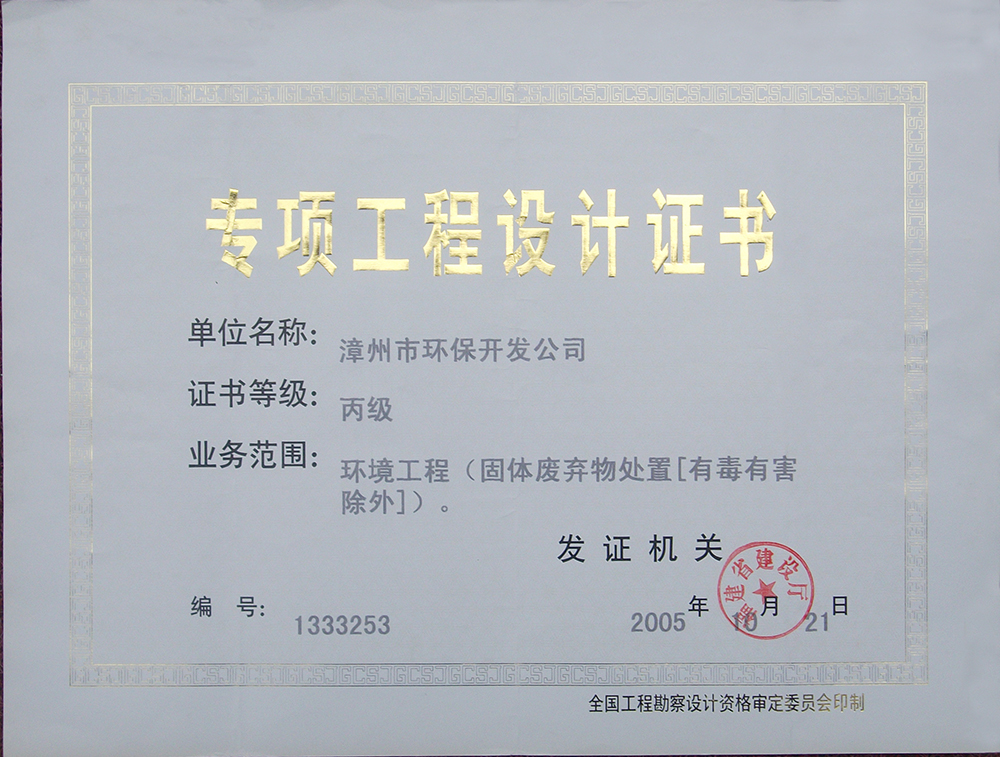 1、環(huán)境工程(廢水、廢氣)專項工程設(shè)計乙級,證書編號:3417;